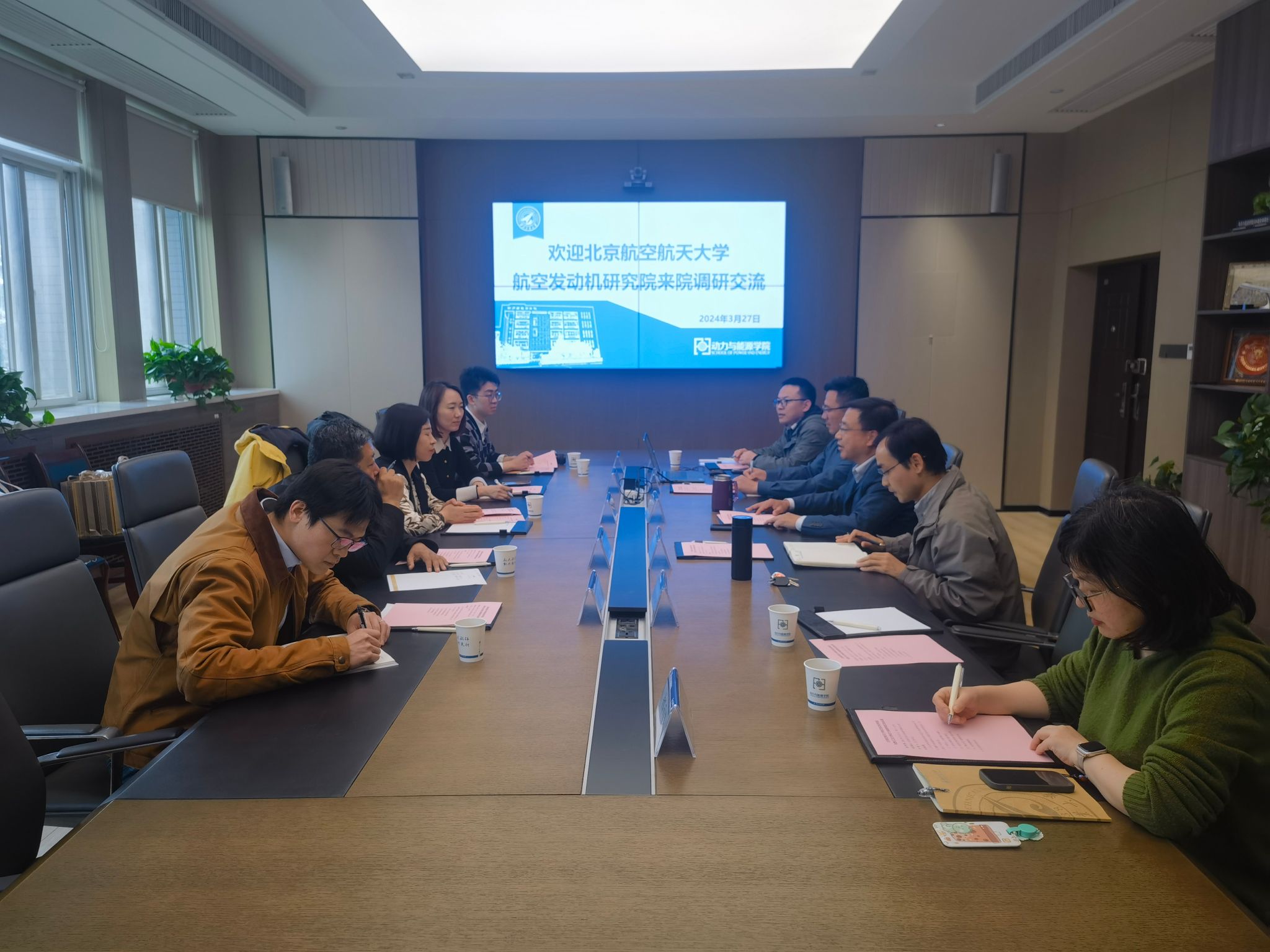 3月27日下午,北航航空发动机研究院常务副院长胡殿印等一行5人来到我院进行调研交流。学院党委书记王占学、副院长王可、副院长高文君等参加了座谈。会议由王占学主持。