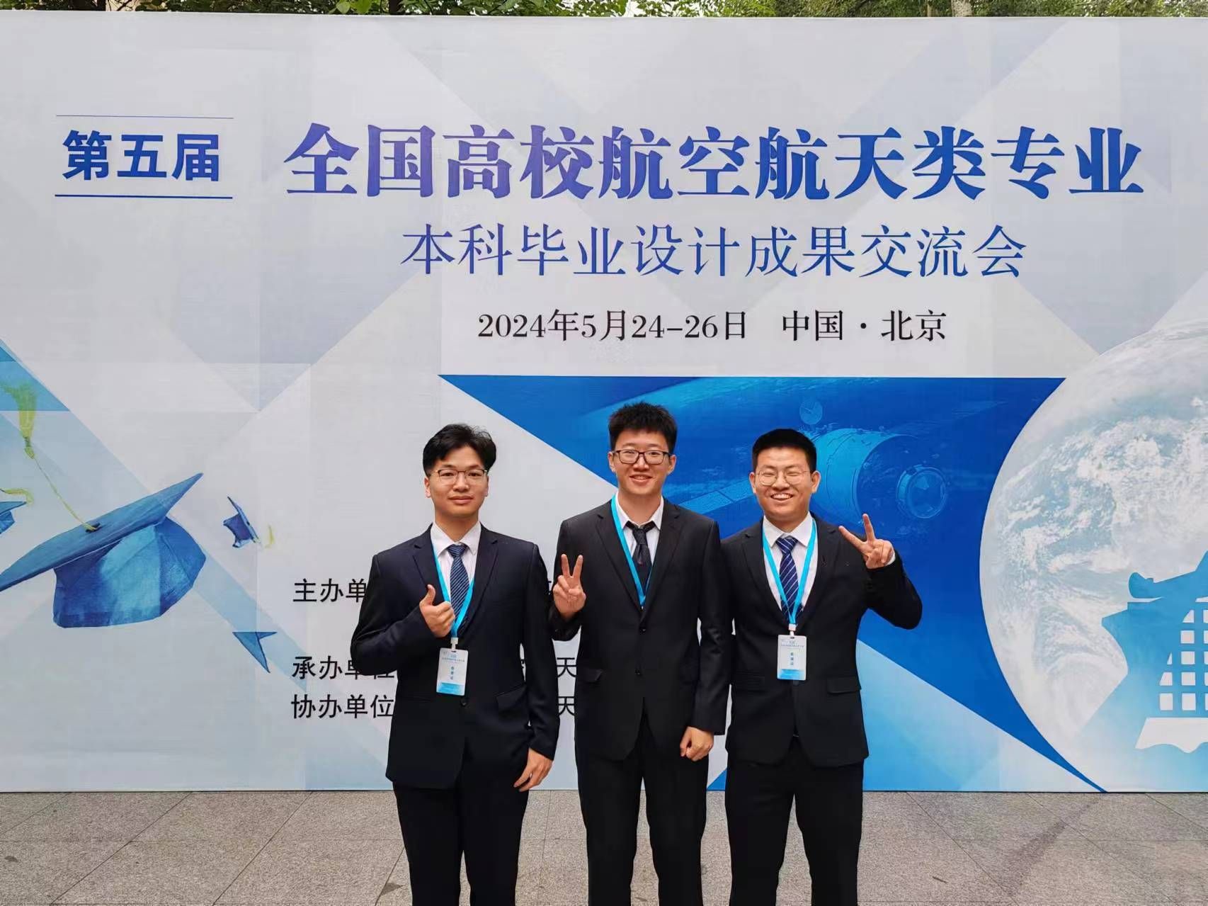 2024年5月25日,由教育部高等学校航空航天类专业教学指导委员会主办、北京航空航天大学承办的“第五届全国高校航空航天类专业本科毕业设计成果交流会”在北航学院路校区举办。经导师推荐、学院选拔、学院打磨,由威廉williamhill体育刘海涌老师带队,楚武利老师指导的本科生杨曦、周莉老师指导的本科生吴宇星、茅晓晨老师指导的本科生陈飞赴北航参与交流展示。