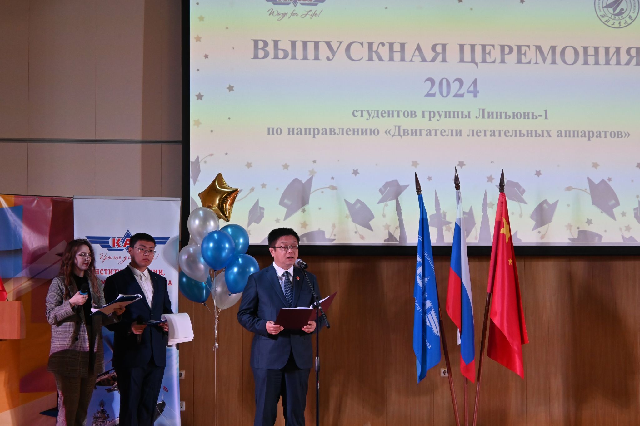 在这庄重而又温馨的典礼上,西北工业大学校长助理王宇波代表学校,向顺利完成学业的24位凌云学子们表达了最热烈的祝贺。他说,首届凌云班本科生的毕业,标志着两校合作进入了一个崭新而深远的实质性、深层次的新阶段。他寄语凌云学子们,在中俄两国优质教学资源的共同浇灌下,现在学有所成、学有所用,未来踔厉奋发,再启新程,勇敢追梦,定能在中国式现代化的伟大进程中绽放出绚丽的青春之花。