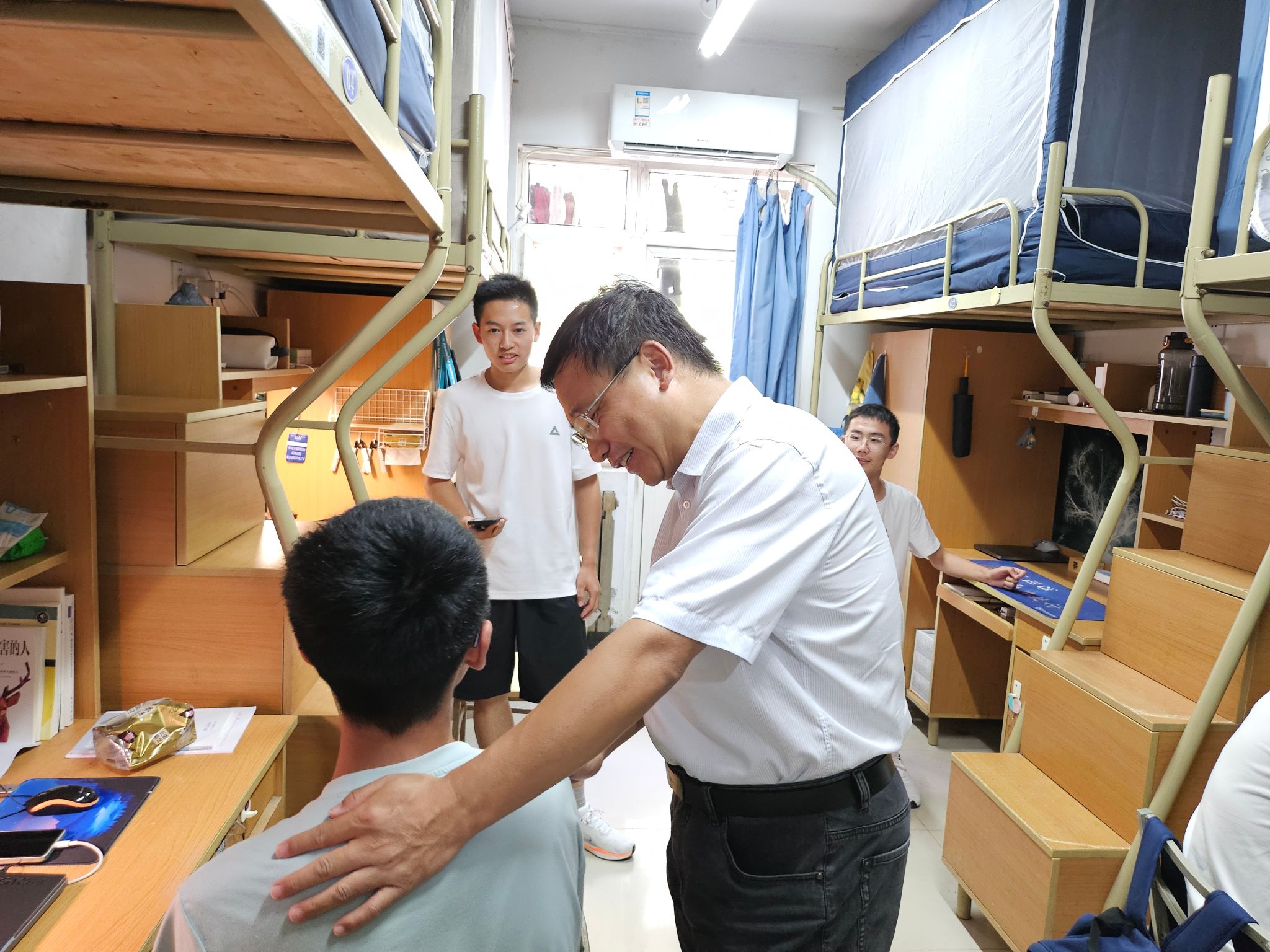 8月30日,徐永超副书记和肖强辅导员前往硕士研究生新生宿舍,了解了硕士新生们的生活状况,如宿舍卫生,学业规划,有无苦难需要帮助等等。硕士新生们也表示将专心科研,努力提升综合素养。