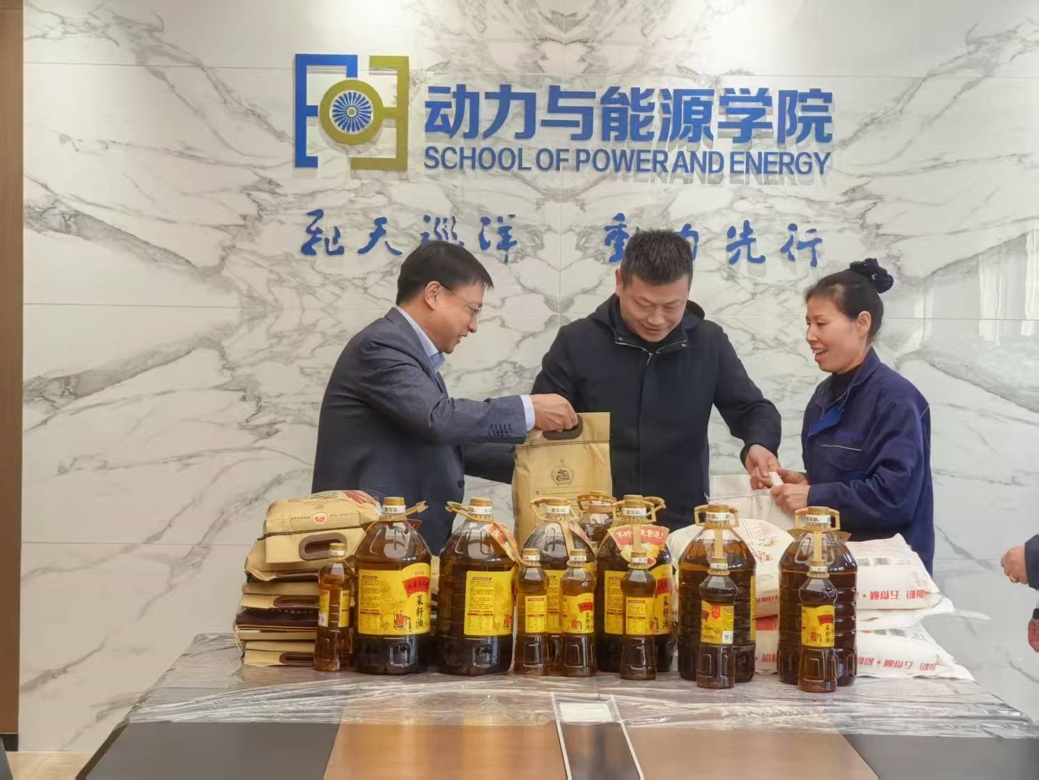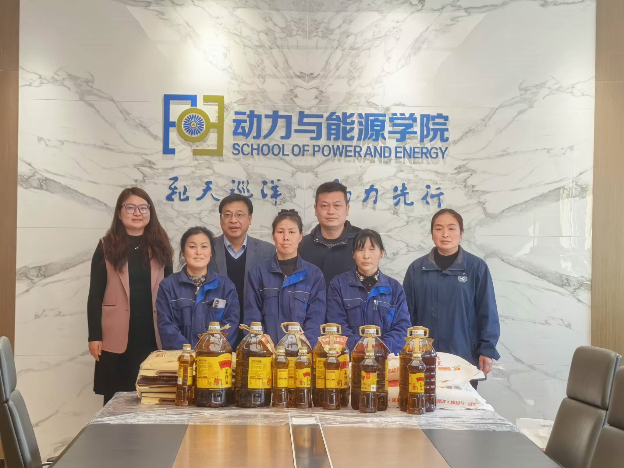 首先,王占学代表全院师生向物业人员致以诚挚感谢。他表示,物业管理员是校园运行的“守护者”,无论是寒冬酷暑的卫生清洁、安全巡查,还是日常设施维护、突发事件处理,始终以高度的责任心保障了师生教学科研工作的顺利开展,为学院营造了安全、整洁、舒适的环境。随后学院向物业管理员赠送了精心准备的米、面、油等慰问品。