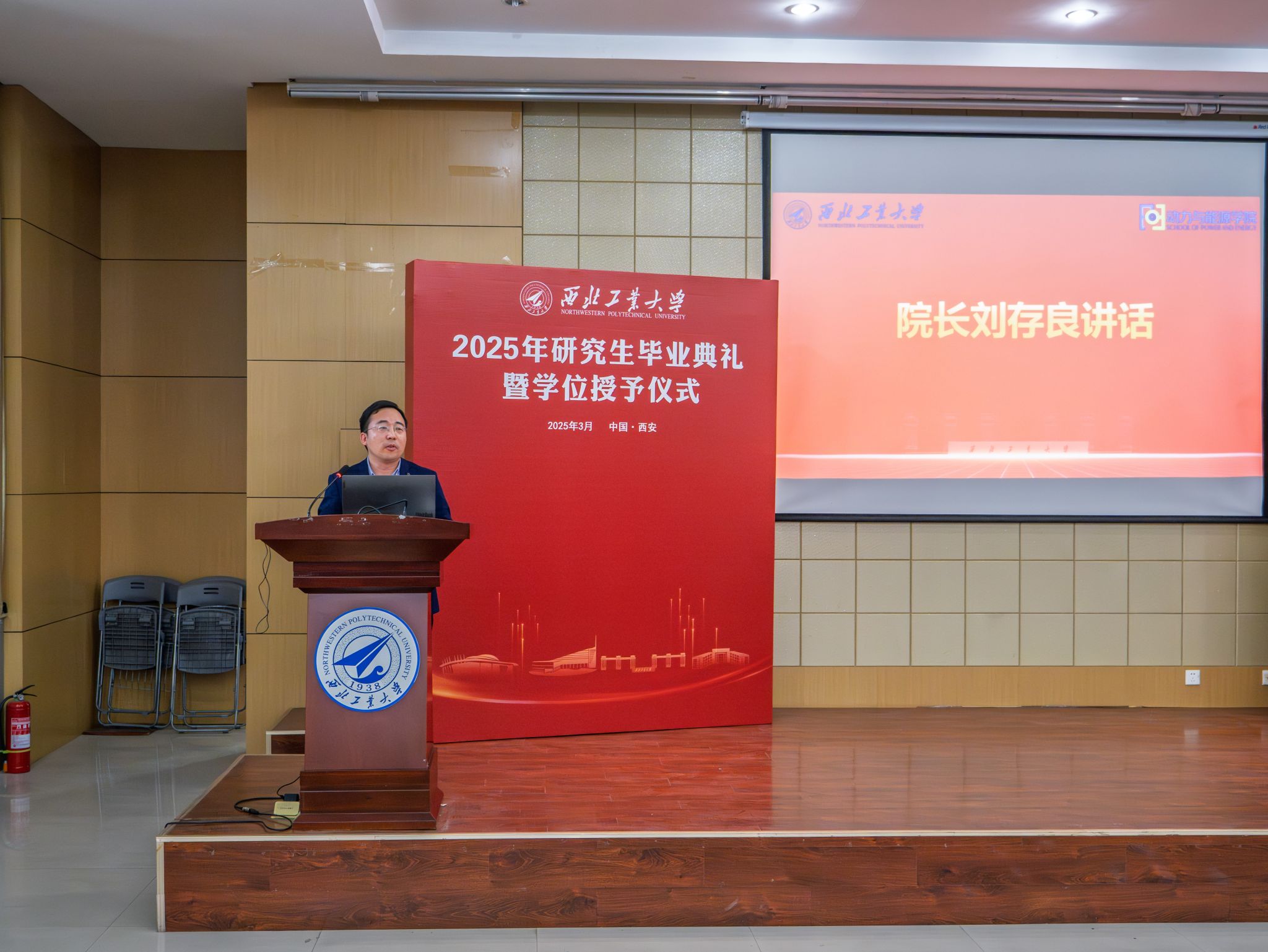 刘存良代表学院向毕业生们表示最热烈的祝贺。他分享四点期望以期给同学们带来启示和帮助:第一,永葆学习之心,不断追求卓越。无论将来从事何种职业,都要始终保持对知识的渴望和对学习的热情,将所学知识转化为解决实际问题的能力。第二,牢记校风校训,续写西工大现象。严格按照“专业精、系统强、重实践、能担当”的“总师型”人才的标准来要求自己,在未来的岗位上续写西工大现象。第三,坚守初心使命,勇担社会责任。要心怀国之大者,将个人的成长融入到社会的发展之中,积极为中国式现代化建设贡献自己的青春力量。第四,保持乐观豁达,笑对人生挫折。积极面对生活中的不如意,学会从挫折中吸取教训,总结经验,重新出发。