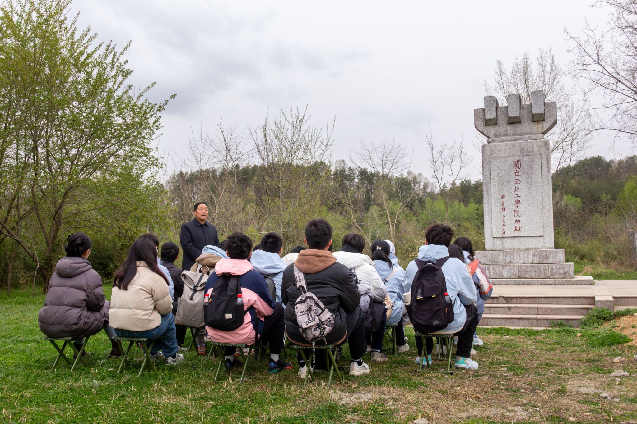 时光荏苒,许多建筑在岁月的洗礼下已渐斑驳,师昌绪先生亲笔题写的“国立西北工学院”石碑,却依旧巍峨耸立,见证着历史的沧桑变迁。在学校旧址之上,原城固县博物馆馆长苟保平老师为同学们带来了一堂生动而深刻的党课。“坝上长夜,七星灯火,古路坝的这一盏灯火,照亮了暗夜里西北明净的天空,将中华民族高等工程教育的火种,撒播在了西北广袤的大地上,生生不息,形成了燎原之势。”课程结束,每一位同学对那段峥嵘岁月都有了更深入的了解,同时也被西北联大师生所展现出的不畏艰险、矢志报国的爱国情怀深深打动,自觉在旧址前庄严宣誓,决心以师昌绪先生等先辈为楷模,传承西工大精神,恪守“公诚勇毅”的校训,让这份精神之光永远照耀前行的道路。
