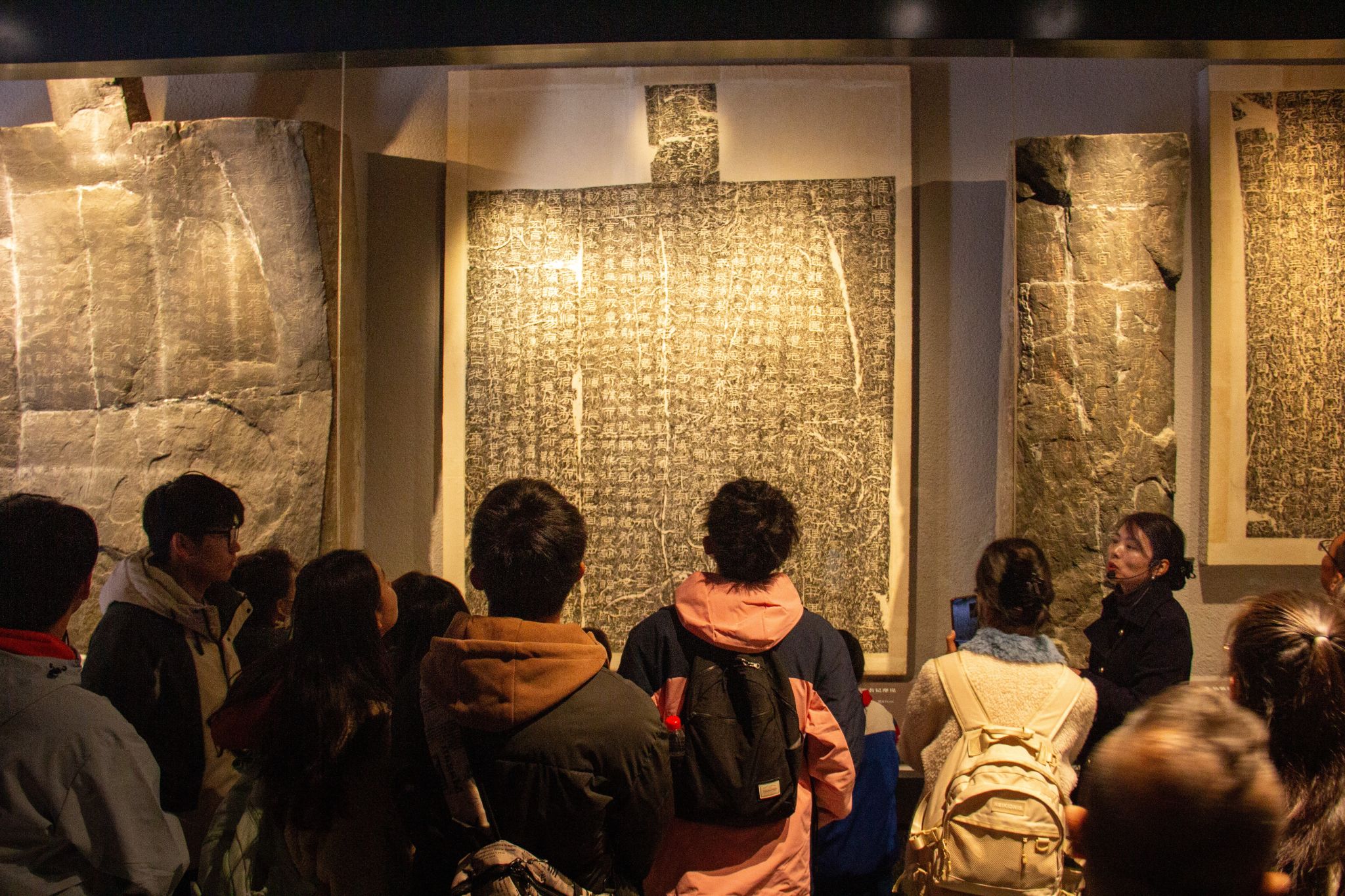 中午,大家来到了汉中市博物馆,这里是习近平总书记考察汉中的首站。在讲解员的带领下,同学们细致参观了望江楼、石鼓亭等历史建筑,并仔细观摩了“石门十三品”等国家一级文物。驻足博物馆内,大家切身体会到文物中所承载的辉煌文明与历史缩影。正如习近平总书记所说:“一个博物馆就是一所大学校。”实地研学为同学们打开了一扇深入中华文化的大门,走过的每一座建筑、每一件文物,也都如同一颗颗满载着中华优秀文化基因的火种,在同学们的心中点燃了让古老文化在新时代持续“火”下去的火把。