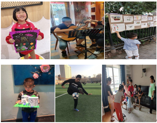 孩子们有的弹奏琴键,拨动琴炫享受音乐世界,有的欣赏点评画展,有的饱含深情地朗诵,有的踢足球锻炼身体,有的和父母参加游园活动,孩子们也有发挥想象创作画作、制作手工,还有拍摄各种萌照。活动中,孩子充分享受一个自我展示的机会,更为教职工创造了一次与孩子体验亲情的平台。