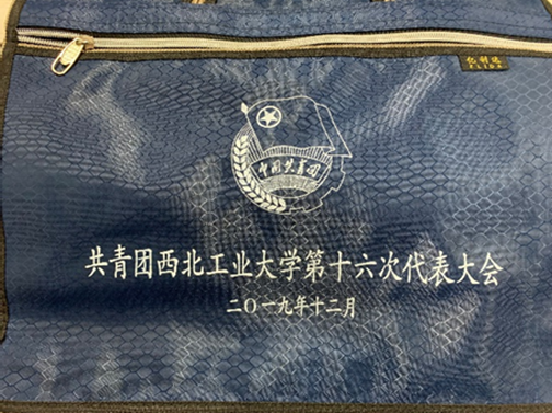 2019年12月6日共青团西北工业大学第十六次代表大会于长安校区翱翔学生活动中心成功召开。十分荣幸能够作为第六代表团的团长,见证并且参与到这次盛会,这也是我人生中第一次作为代表参加共青团的会议。这个袋子是大会的纪念品,承载着我带领我们代表团多次组织讨论的点点滴滴。
