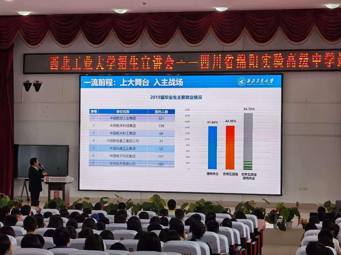 宣传首日,招生宣传组来到绵阳东辰国际学校开展招生宣讲,郭伟民老师为学生介绍了我校的优势学科、培养模式及杰出校友。会后,郭老师代表西北工业大学赠予东辰国际学校喜报,并与杨俊校长合影留念。