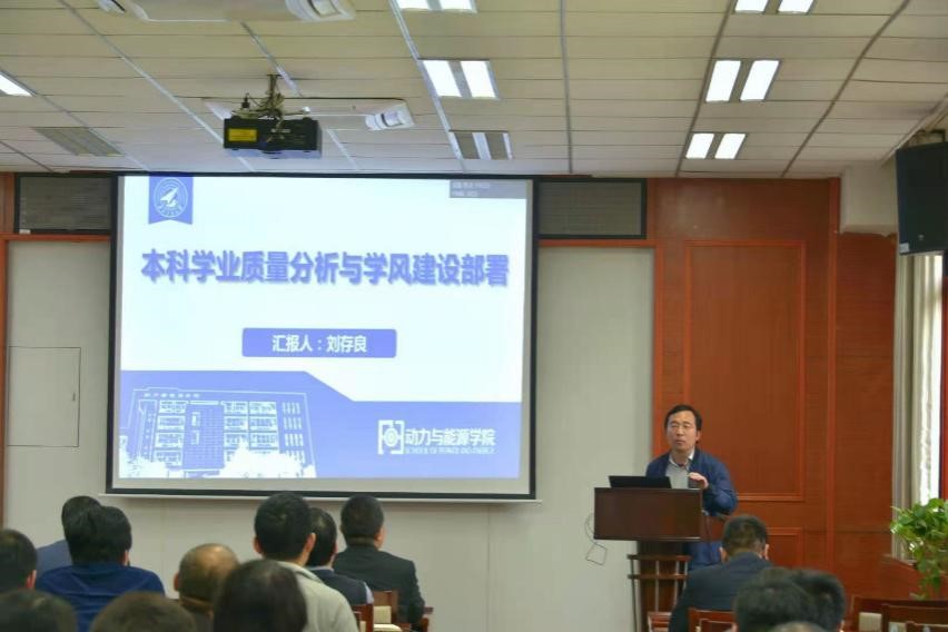 随后,刘存良从课堂、本科导师、班主任、辅导员、学生骨干等方面对学风建设工作进行了部署。他强调,教师要把严把课堂关,加强课堂监管、加强课堂互动,加强学院督导,及时反馈课堂效果,抓住课堂主阵地;本科生导师要加强选课管理、专业指导和学习指导,做好学生成长之路上的指路明灯;学院要继续落实班主任工作管理办法,细化班主任考核内容与办法;辅导员方面要落实辅导员工作管理办法,加强辅导员工作的过程量考核与结果量考核,严格落实学业预警与学业分流机制,切实帮助学生解决学习中的问题;强化学生组织的作用,打造有战斗力的班委骨干队伍。最后,他希望全院教职工要齐心协力,以学生为根,以育人为本,将知识、能力、价值塑造有机融合,将立德树人落到实处。