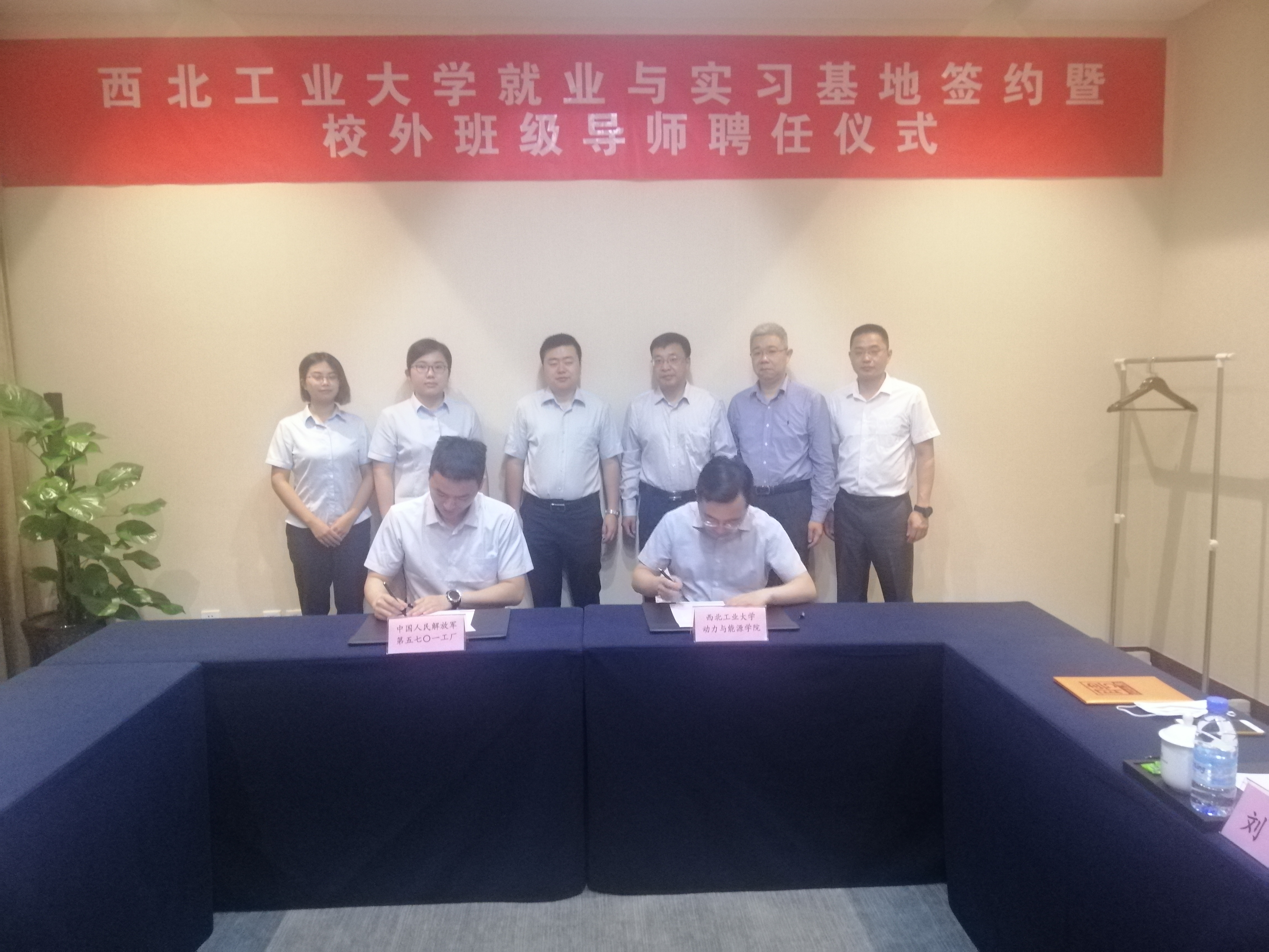 会上,刘存良副院长代表学院与五七〇一厂签订了就业与实习基地协议,王占学院长代表学院为就业与实习基地授牌,并为卓伟伟校友颁发了校外班级导师聘书。