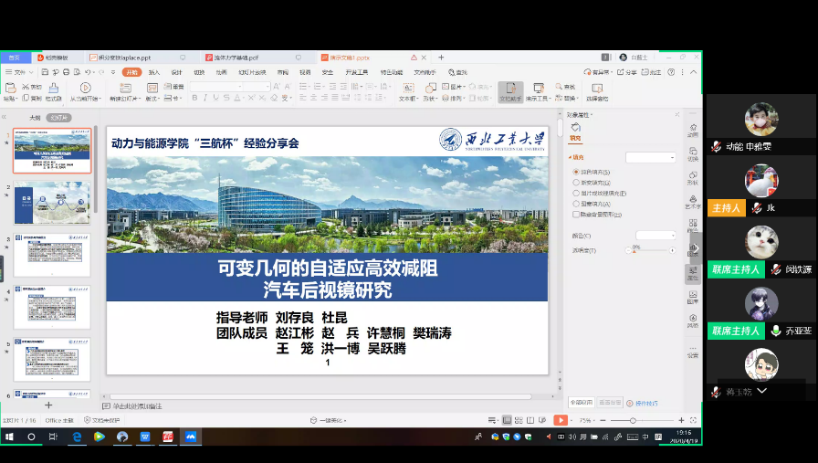西北工业大学“三航杯”大学生课外学术科技作品竞赛是我校传统的学生科技活动,该项赛事引导和激励广大学生学习科学知识、科学方法,培育实事求是、脚踏实地的科学精神,培养创新能力和实践能力,全面提高科学素养。为了让更多同学了解“三航杯”竞赛,营造良好的科技竞赛氛围,2020年4月19日,威廉williamhill体育面向全院同学开展“三航杯”竞赛经验分享会,本次分享会吸引了近百位同学前来聆听。