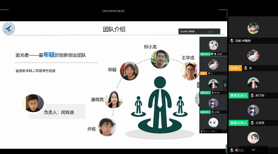 随后,二等奖项目“向地下空间的新型多功能照明—防疫系统”负责人闵铁源同学进行分享。在2020年寒假,新冠肺炎疫情发生之际,此项目应运而生,实现了地下空间昼夜不间断照明、紫外线智能防疫等众多功能的应用,并具有可再生能源利用充分、电能耗费量小、安全性能高、避免人力物力大量投入等优点。闵铁源同学从管理学角度对如何解决市场痛点等问题进行分析,介绍了作品的创新点,同时强调了专业术语使用、论文格式排版等细节问题。他鼓励各位同学积极参加此类赛事,提升自己综合能力。