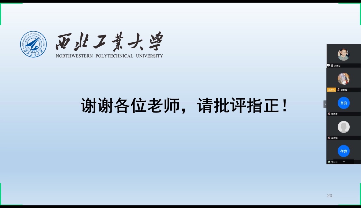为保证本科毕业设计(论文)质量,加强过程管理,更加全面地掌握2020届本科毕业设计的具体进展情况,根据《关于启动2020届本科毕业设计(论文)工作的通知》的精神,落实《关于做好2020届本科毕业设计(论文)中期检查答辩工作的通知》的要求,结合《威廉williamhill体育2019-2020学年春季学期延期开学阶段本科生教学工作方案》的安排,威廉williamhill体育组织各系对2020届本科毕业设计(论文)进行了中期检查。同时,学院随机抽取了10名学生于2020年4月17日进行了线上集中答辩,教学院长刘存良、航空推进系教学主任张丽芬、航空流体机械系教学主任余晓京、工程热物理系教学主任张丽、动力控制与测试系教学主任马静、本科生教学秘书郭雅楠全程与会指导。