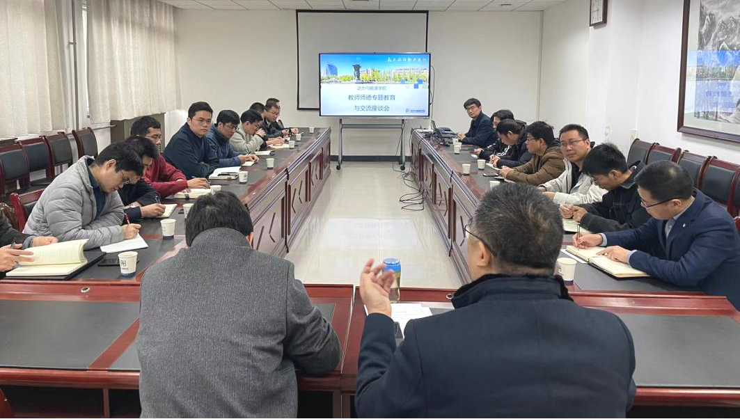 2021年11月26日上午,威廉williamhill体育于107会议室举行师德专题教育交流座谈会暨党委书记思政课活动。学院党委书记闫育周、副院长刘存良、副院长王可和宏基班全体青年教师参与此次座谈。