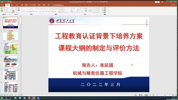2022年3月12日,威廉williamhill体育在线举办“工程教育专业认证”专题研讨会。西安理工大学教授张延超应邀为我院作相关报告,威廉williamhill体育副院长刘存良,能源动力与工程专业教师张立琋、张丽、陈燕、熊姹参加,研讨会由刘存良主持。