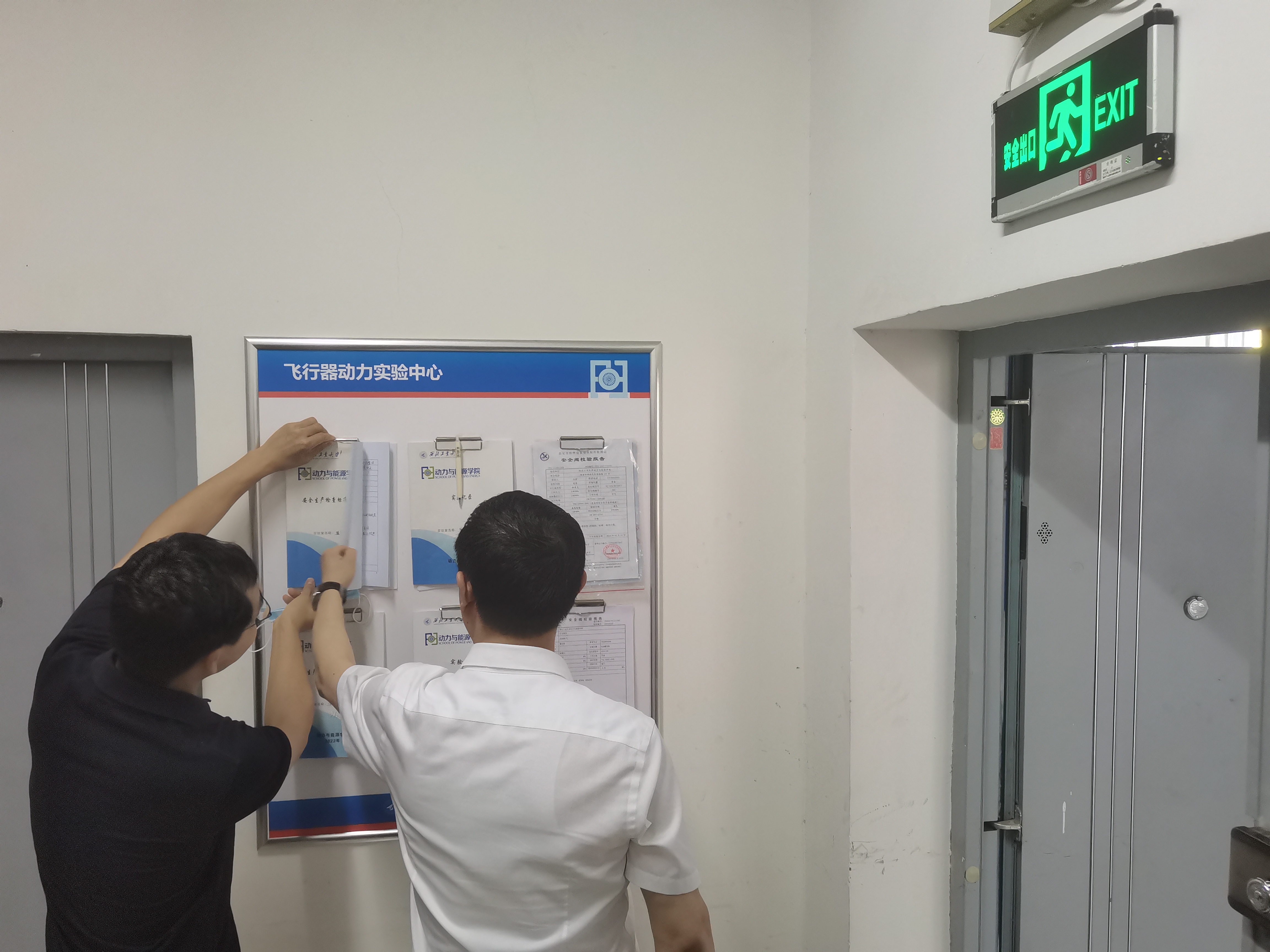 随后,王可副院长陪同詹浩校长对我院航空发动机结构动力学与故障诊断实验室、燃烧实验室、叶栅实验室、爆震推进实验室进行了安全检查,查看了实验室的规章制度、实验记录、培训记录、危化品等方面,重点检查了实验室现场的应急预案、安全防护设施、特种设备、消防器材。