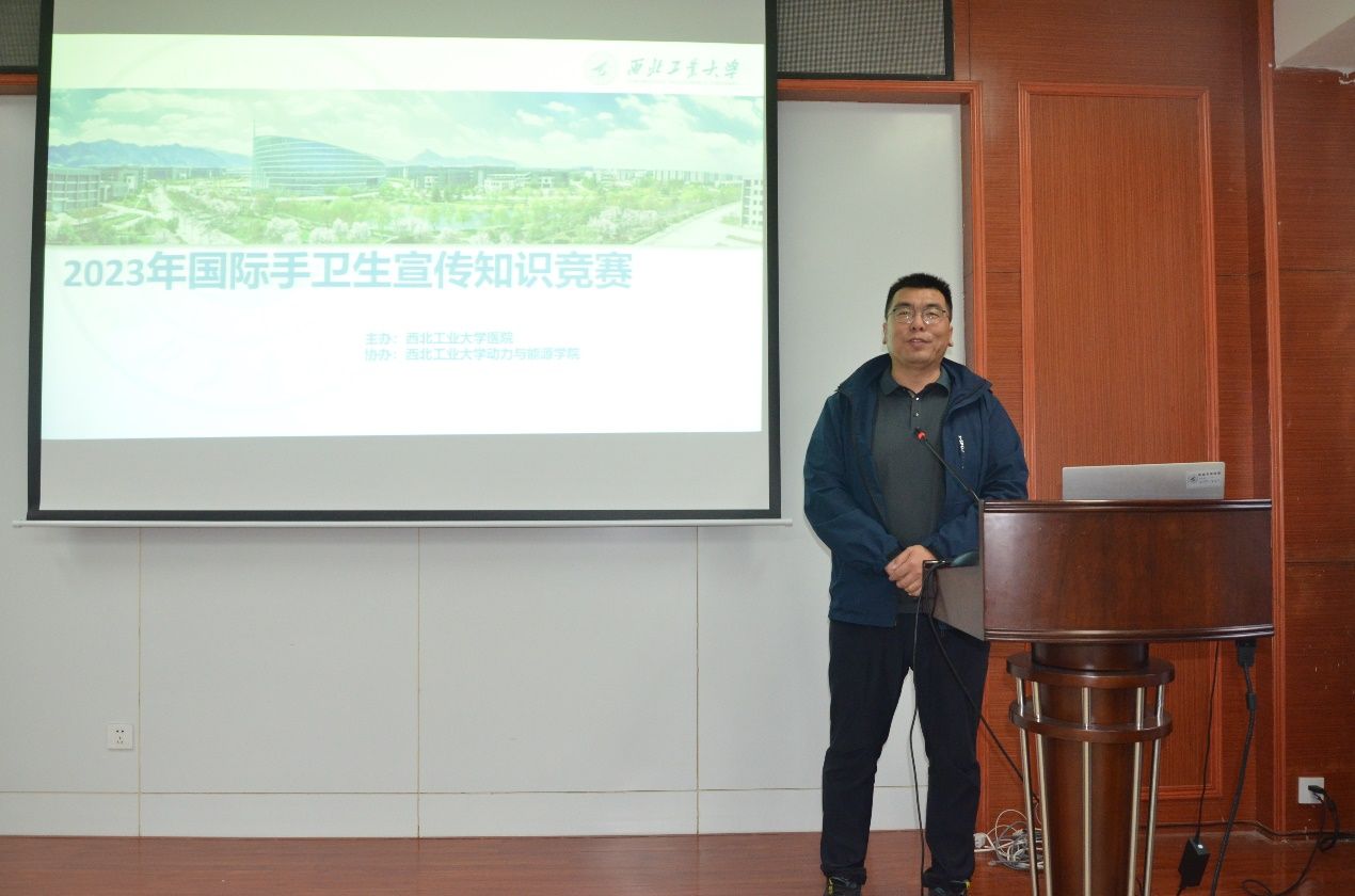 “新冠”疫情肆虐全球的近三年时间,手卫生对于“新冠”疫情的有效遏制,最大程度减少医院感染起到了至关重要的作用。为了让广大师生更深入地了解手卫生的重要性,帮助广大师生改变卫生习惯,威廉williamhill体育协同西北工业大学校医院于5月5日在学院225会议室举办了2023年国际手卫生宣传知识竞赛,校医院党委书记乔辉、副院长何凯亮、动能学院党委副书记刘海涌等我院师生及医护人员参加了本次活动。