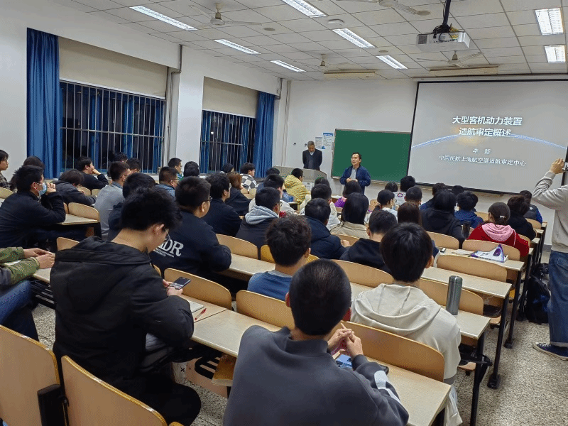 课堂上,同学们积极热烈的与各位行业专家进行互动。各位行业专家结合自己长期从事型号审定的工作经验和感悟,深切的表达了对我国民用飞机和发动机事业的热爱,对国家发展发动机自主设计能力的决心和信心。各位老师积极鼓励同学们要夯实基础知识,坚持实事求是精神,在学习、生活中勇于开拓创新,树立远大理想、热爱伟大祖国、担当时代责任、勇于砥砺奋斗、练就过硬本领、锤炼品德修为。在国家民机事业蓬勃发展的历史时期,勇于站立于潮头,为把我国建设成为航空强国而不懈奋斗!