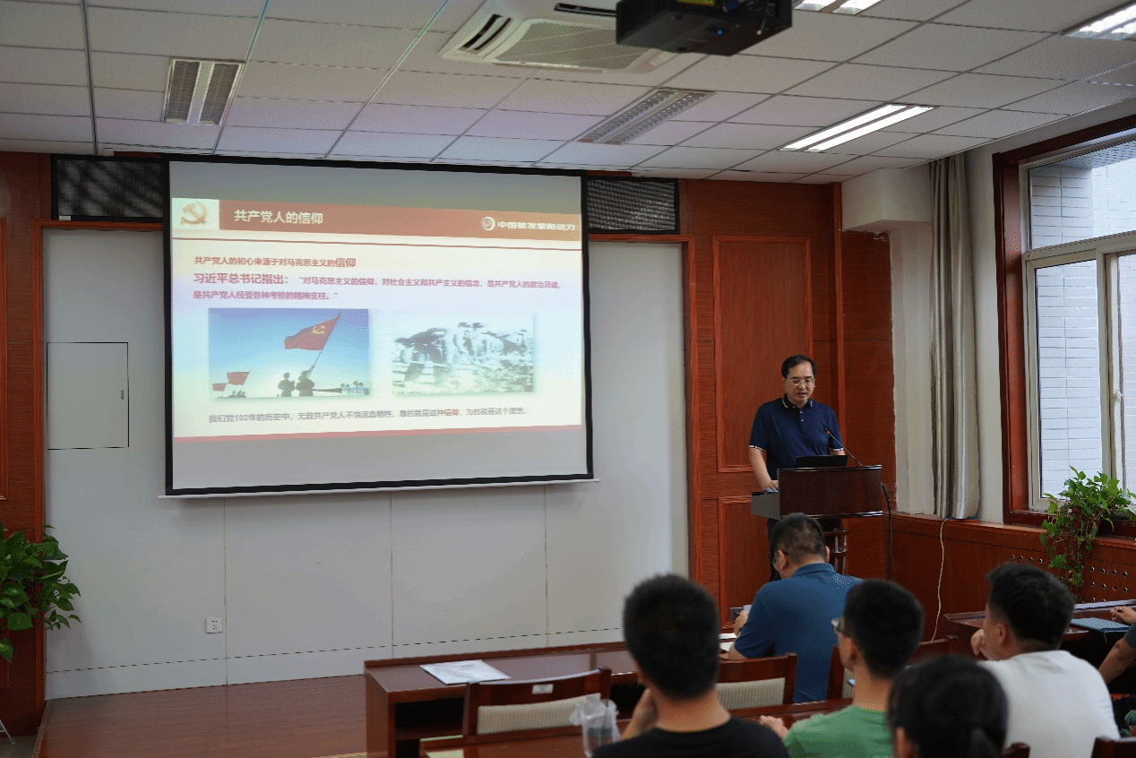 张志国副书记向大家了介绍黎阳公司的历史沿革和发展近况,作为我国“航空工业重大贡献单位”,黎阳公司坚持党建引领,把党旗立在科技攻关一线,自成立以来航空发动机研制取得丰硕成果,为我国航空事业发展做出突出贡献。