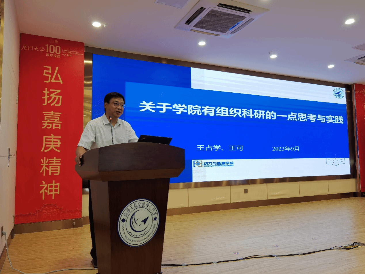 9日上午,王占学作为特邀嘉宾为厦大航院作了“关于学院有组织科研的一点思考与实践”专题报告。从动能学院管理架构、资源分配、保障服务、科研平台搭建等方面介绍了学院有组织科研的工作思路与举措。